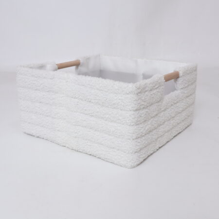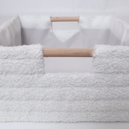 White Faux Fur Stripe Basket