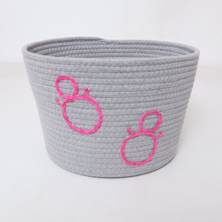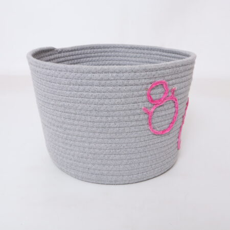 Taper Round Gray Cotton Rope Basket with Embroidery
