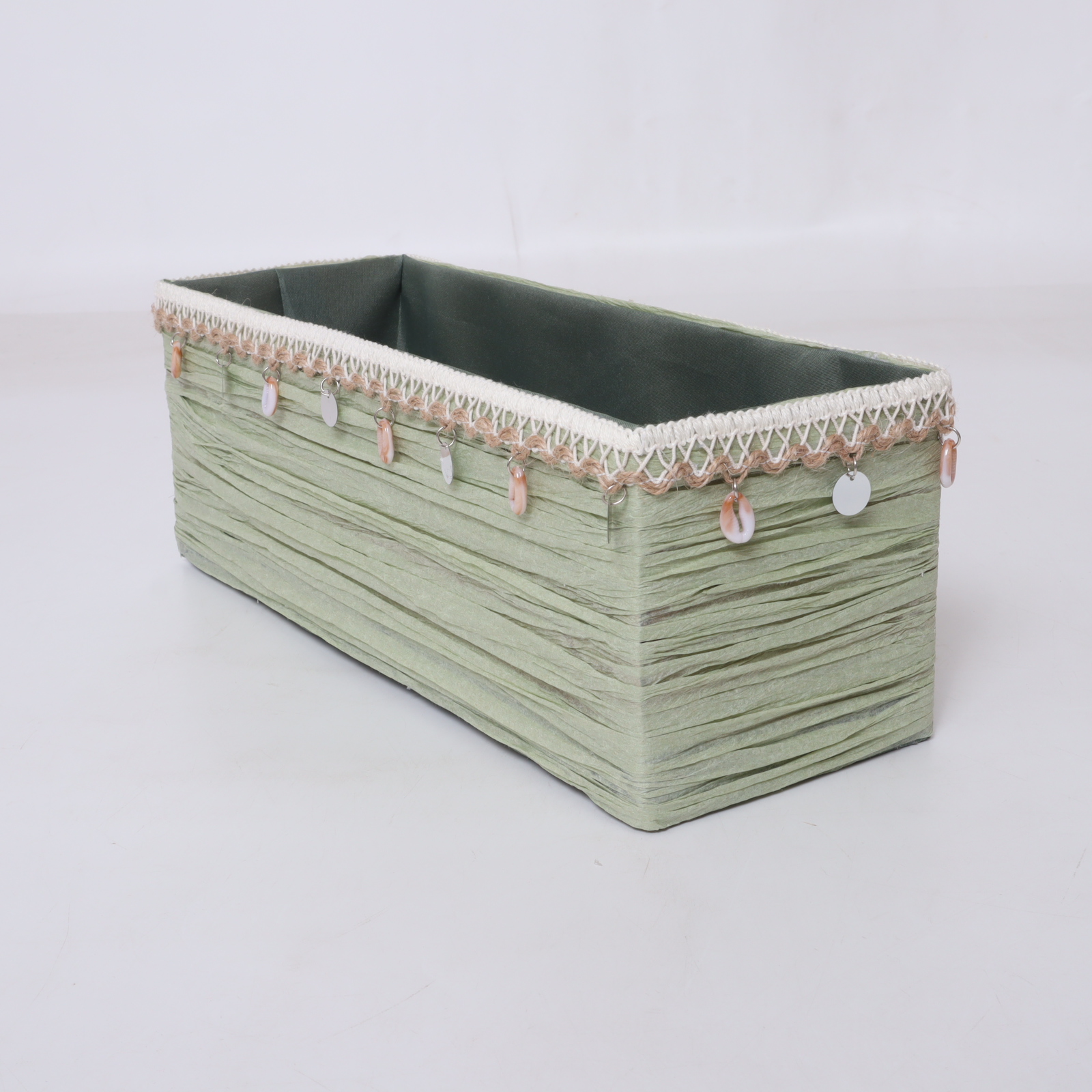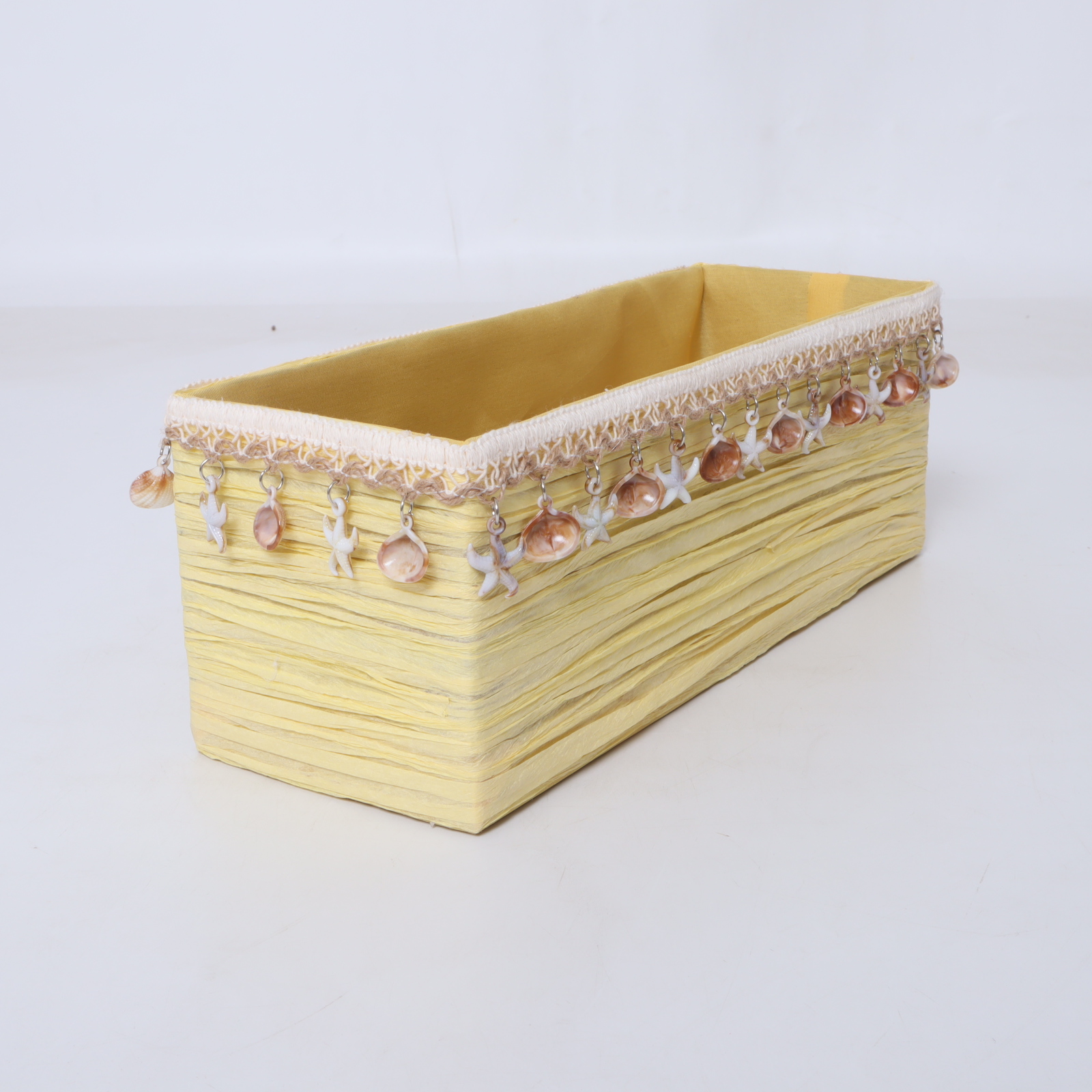 Functionality meets aesthetics with this versatile storage box. Its rectangular design fits seamlessly on shelves, under tables, or within cabinets, optimizing your space without compromising accessibility. The decorative conch tassel adds a coastal vibe, perfect for a variety of interior themes, including modern, bohemian, and casual settings. The lid keeps your belongings dust-free, while the roomy interior provides ample capacity to store all your essentials neatly.