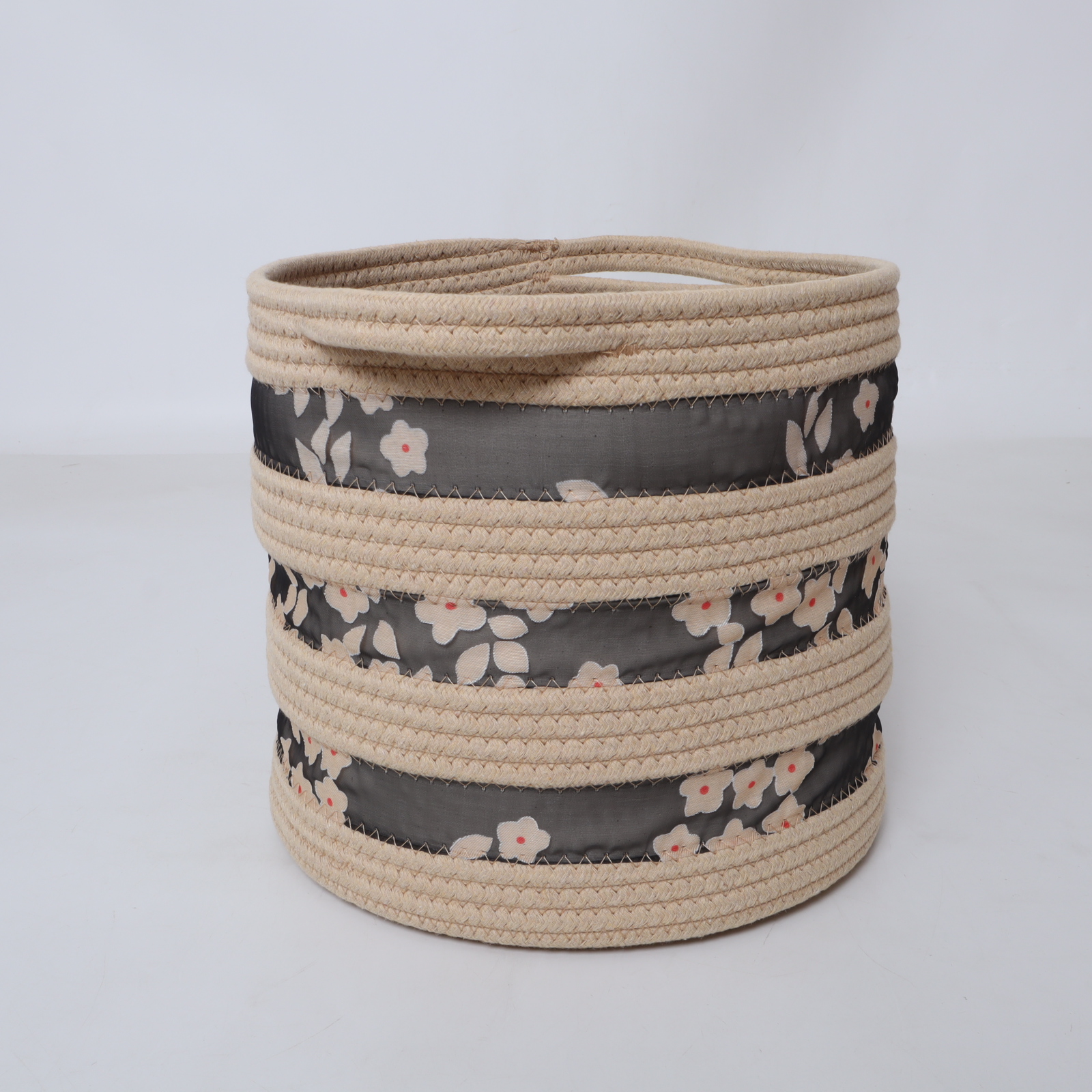 Thanks to its thoughtful design, the Round Cotton Rope Basket is more than just a storage tool. Its printed fabric detail adds a decorative layer, making it a stunning addition to any room – whether it’s the living room, bedroom, or nursery. Use it to tidy up toys, store blankets, or organize laundry in style. The round shape not only provides ample space but also ensures the basket blends seamlessly into cozy spaces without looking bulky.