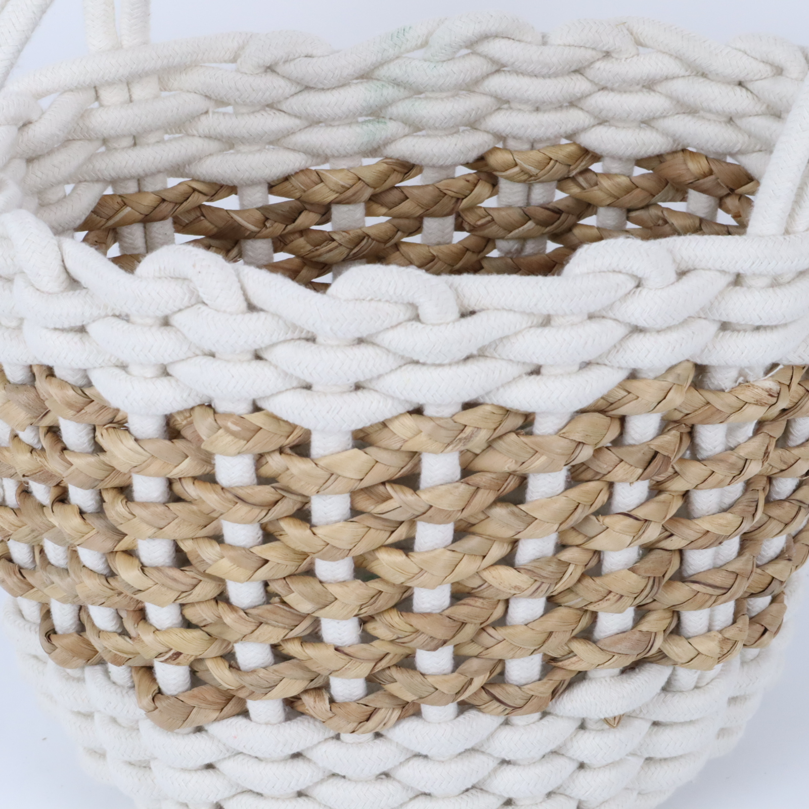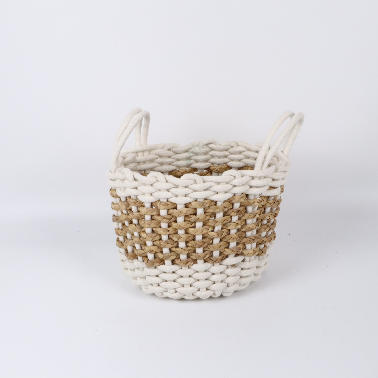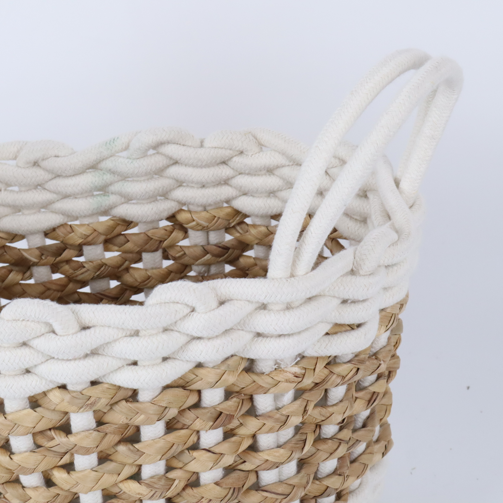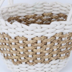 Round Cotton Rope & Straw Woven Basket