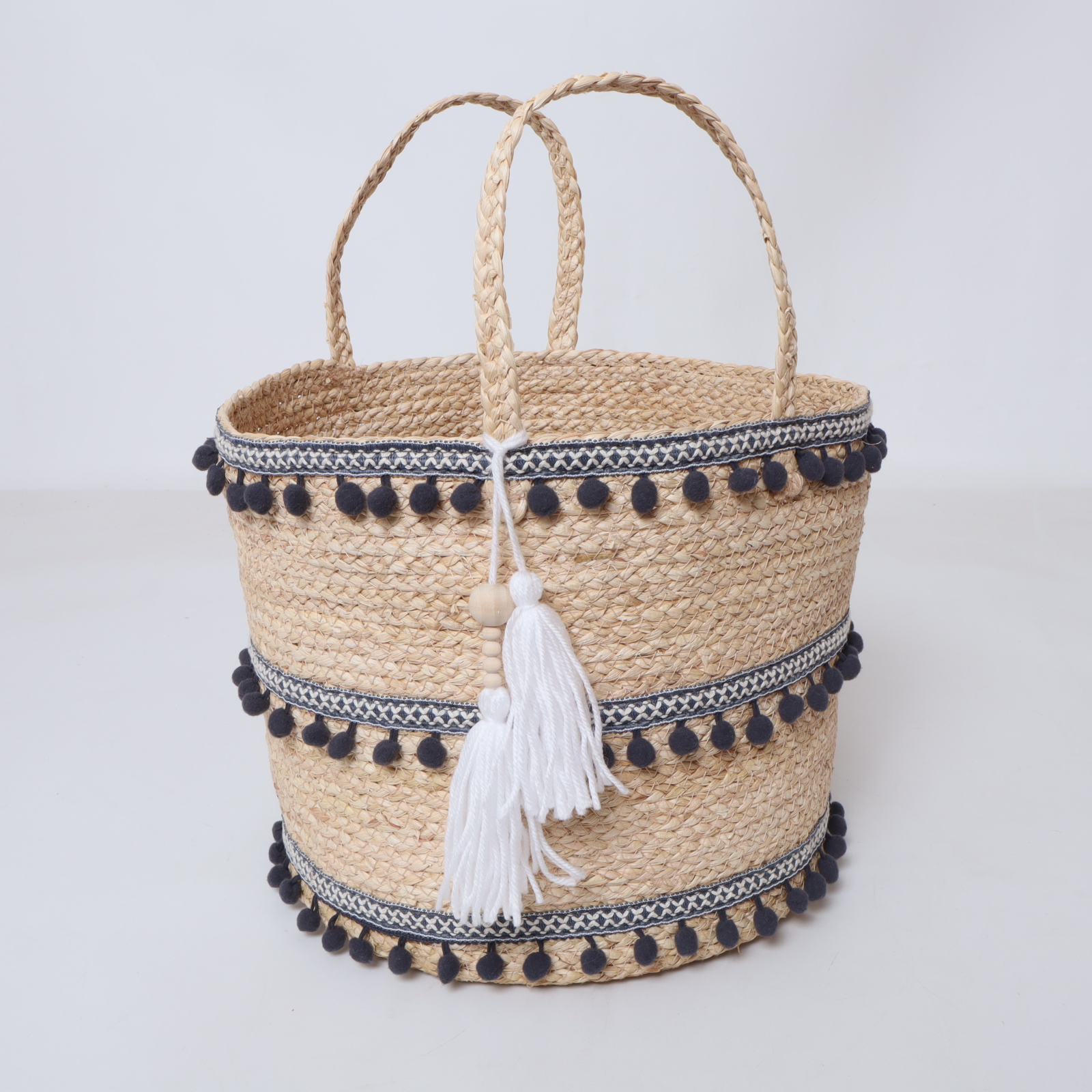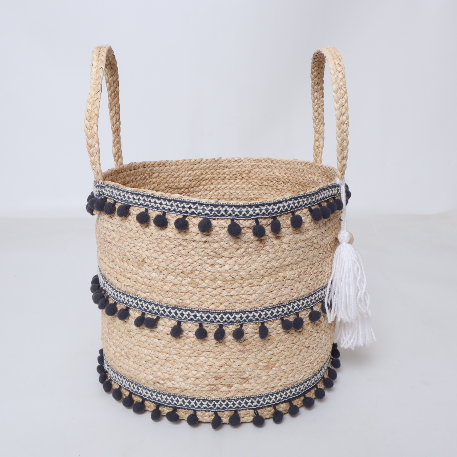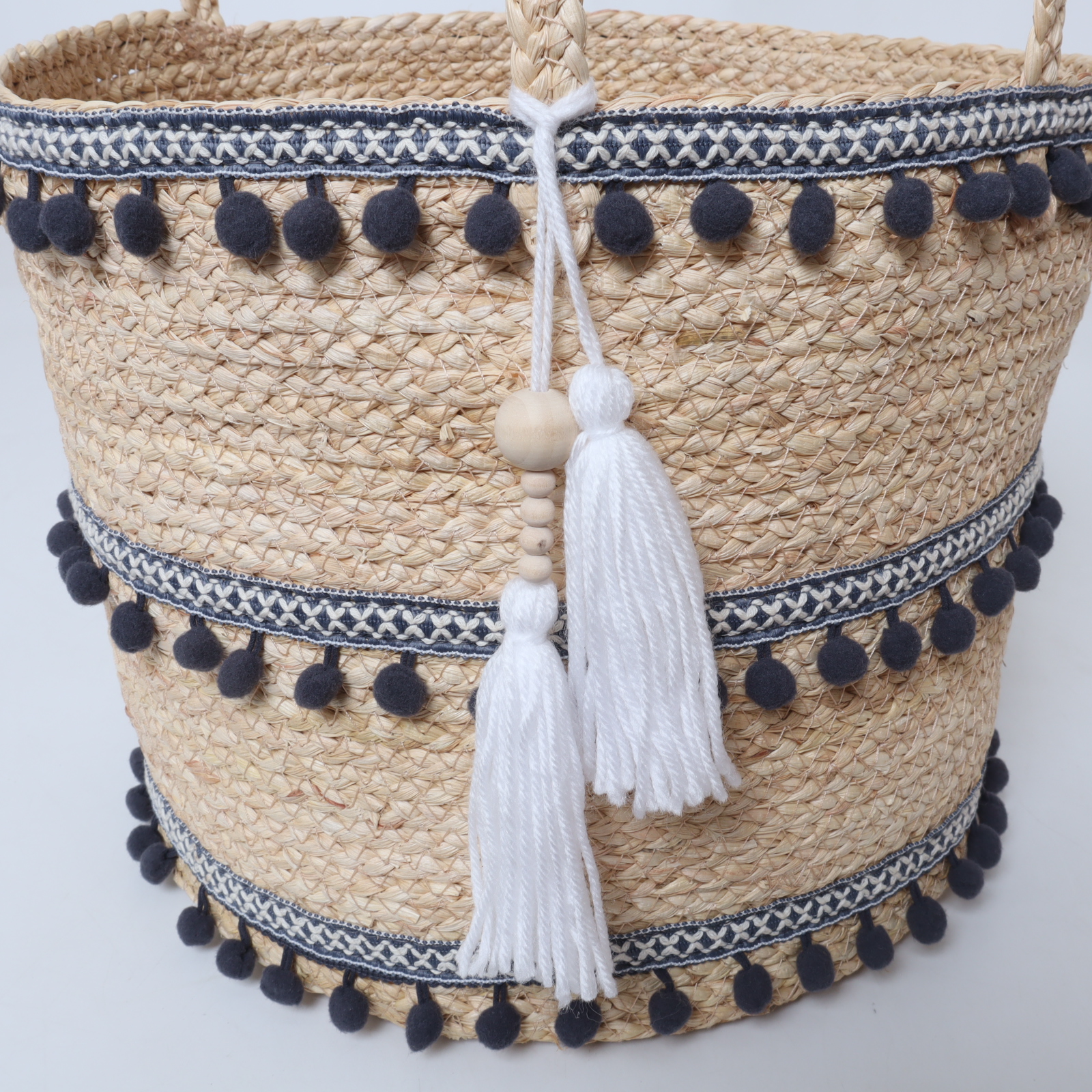 Introducing the beautifully crafted Round Straw Basket with Pompom Decoration, a perfect blend of style and practicality that enhances your living space. Made from high-quality natural straw, this basket stands out with its vibrant and playful pompom accents, infusing your home with a touch of cheer while keeping your belongings organized. Let this handcrafted piece redefine your storage needs with charm and functionality.