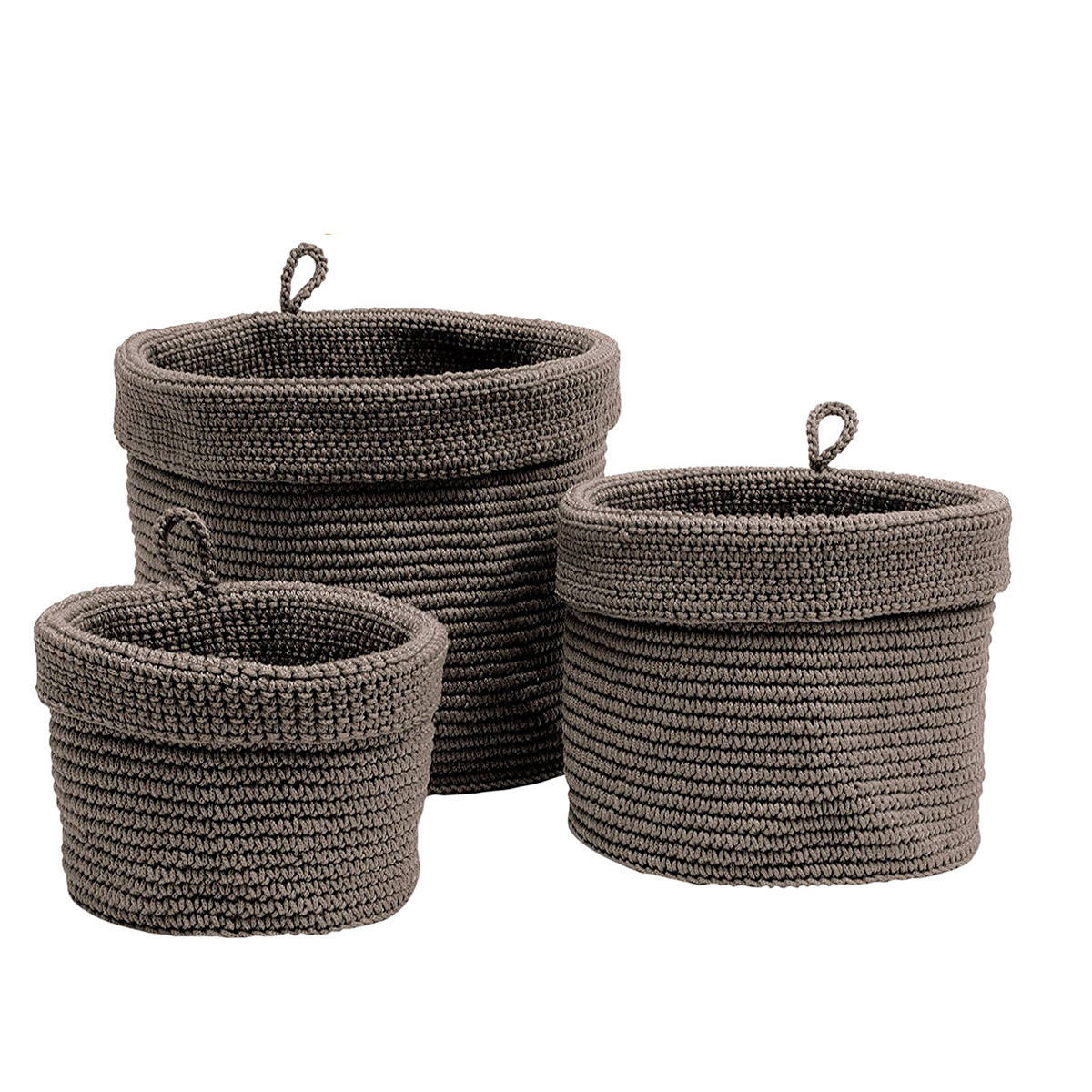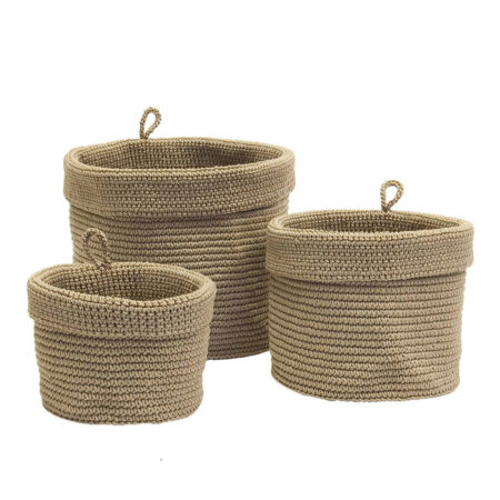 This round set of 3 polyester rope crocheted baskets is more than just storage—it’s a statement piece for your home. Keep your spaces tidy and elevate your decor with these curated baskets designed to bring organization and style into harmony.