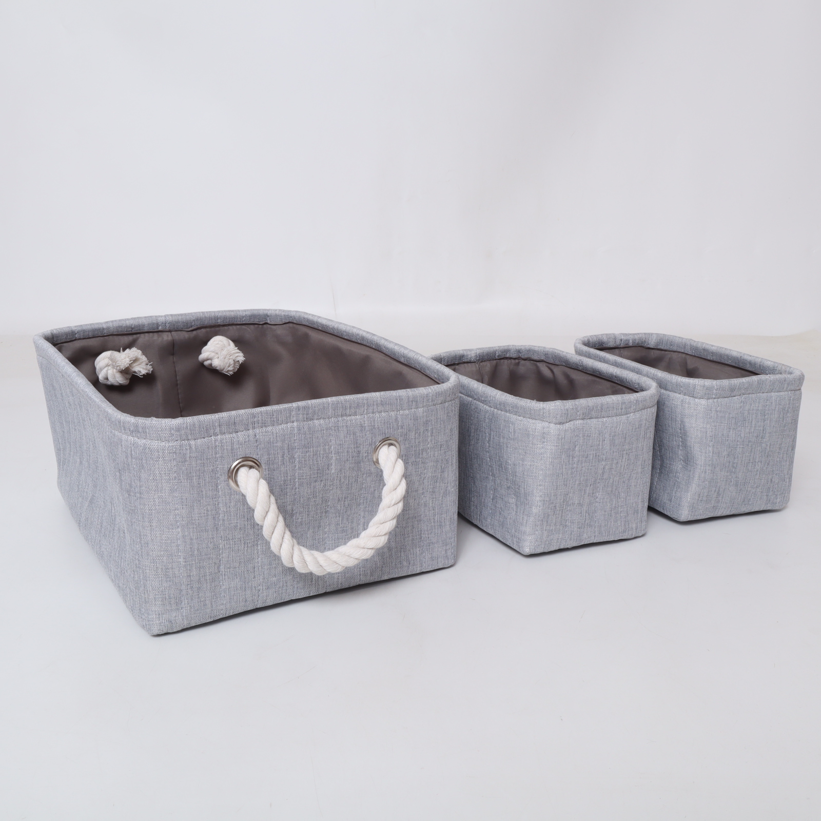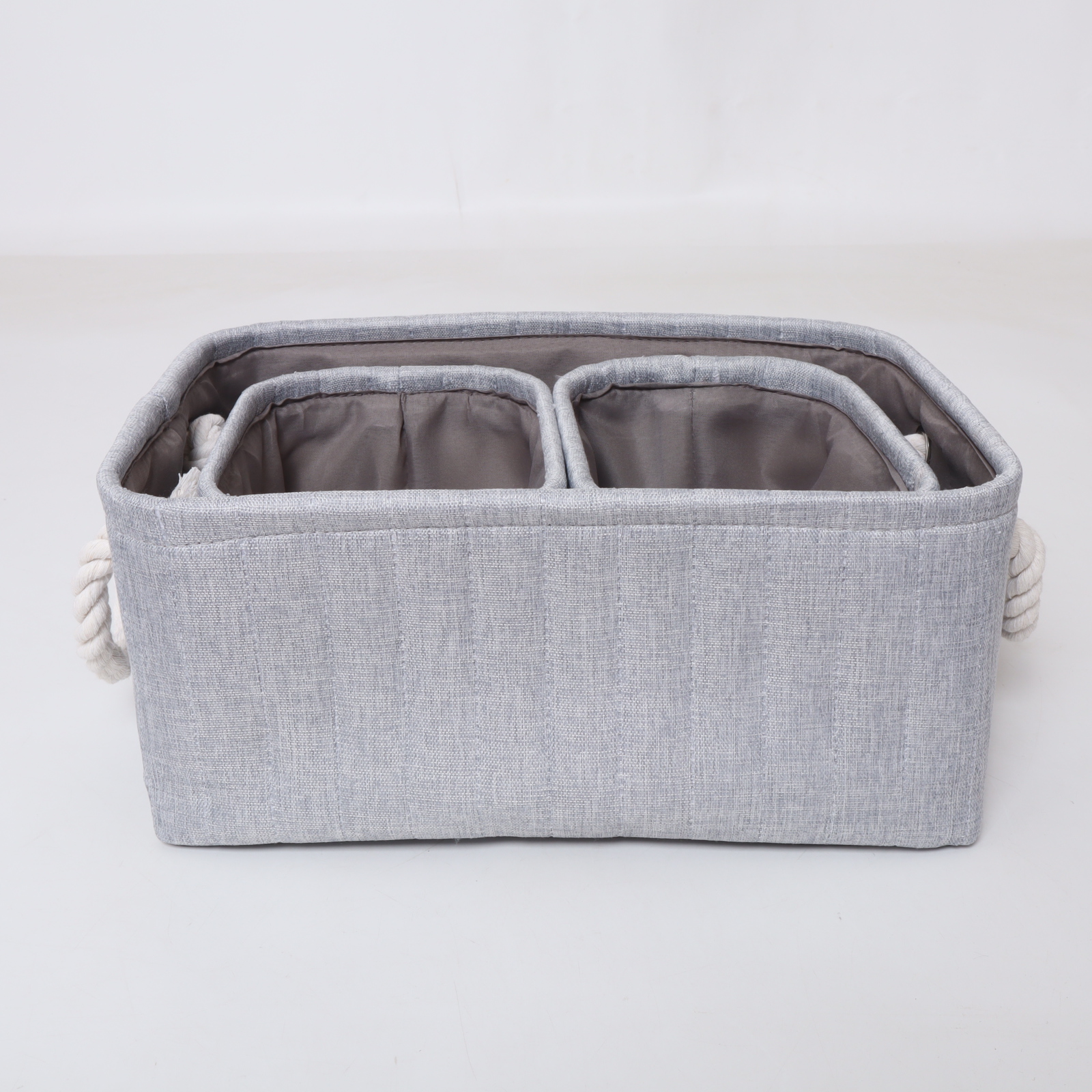 Each basket in the set boasts meticulous stitching, ensuring it holds up through constant use without fraying or tearing. The thoughtful design strikes a balance between practical storage and sophisticated elegance, providing a reliable and attractive organization solution.