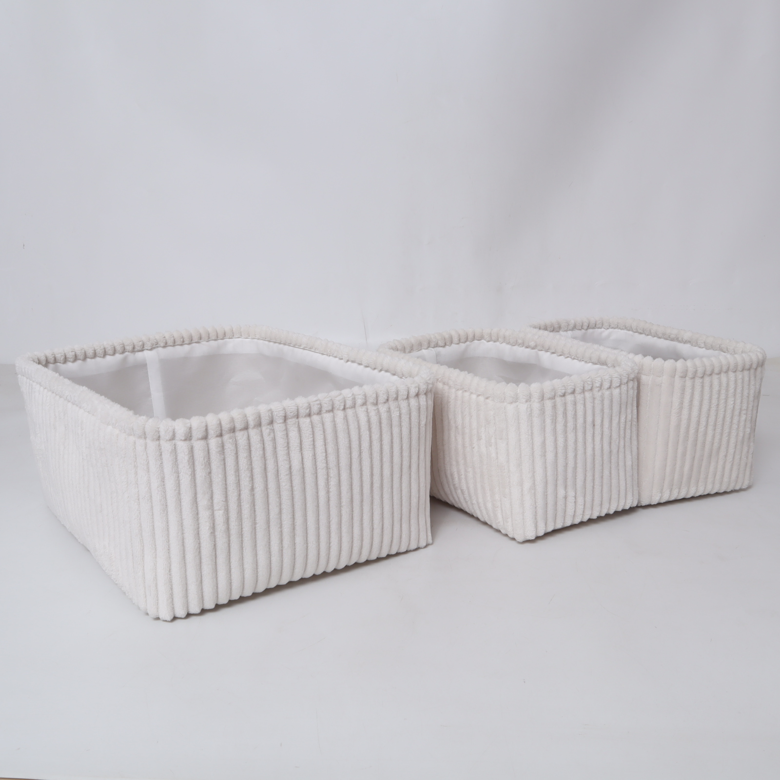 Made from high-quality corduroy fabric, these rectangular baskets are designed to suit modern trends. The sturdy construction ensures they retain their shape over time, offering a reliable storage option for a wide array of items. Their gentle texture adds a touch of warmth to your décor while being gentle on delicate surfaces and skin, giving them a versatile edge for any room or occasion.