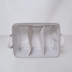 Perfect for everyday use, the 3 divider stripe fabric storage basket successfully combines functionality, style, and ease of maintenance. It’s the ideal solution for anyone looking to add a touch of sophistication while enhancing their organization game.